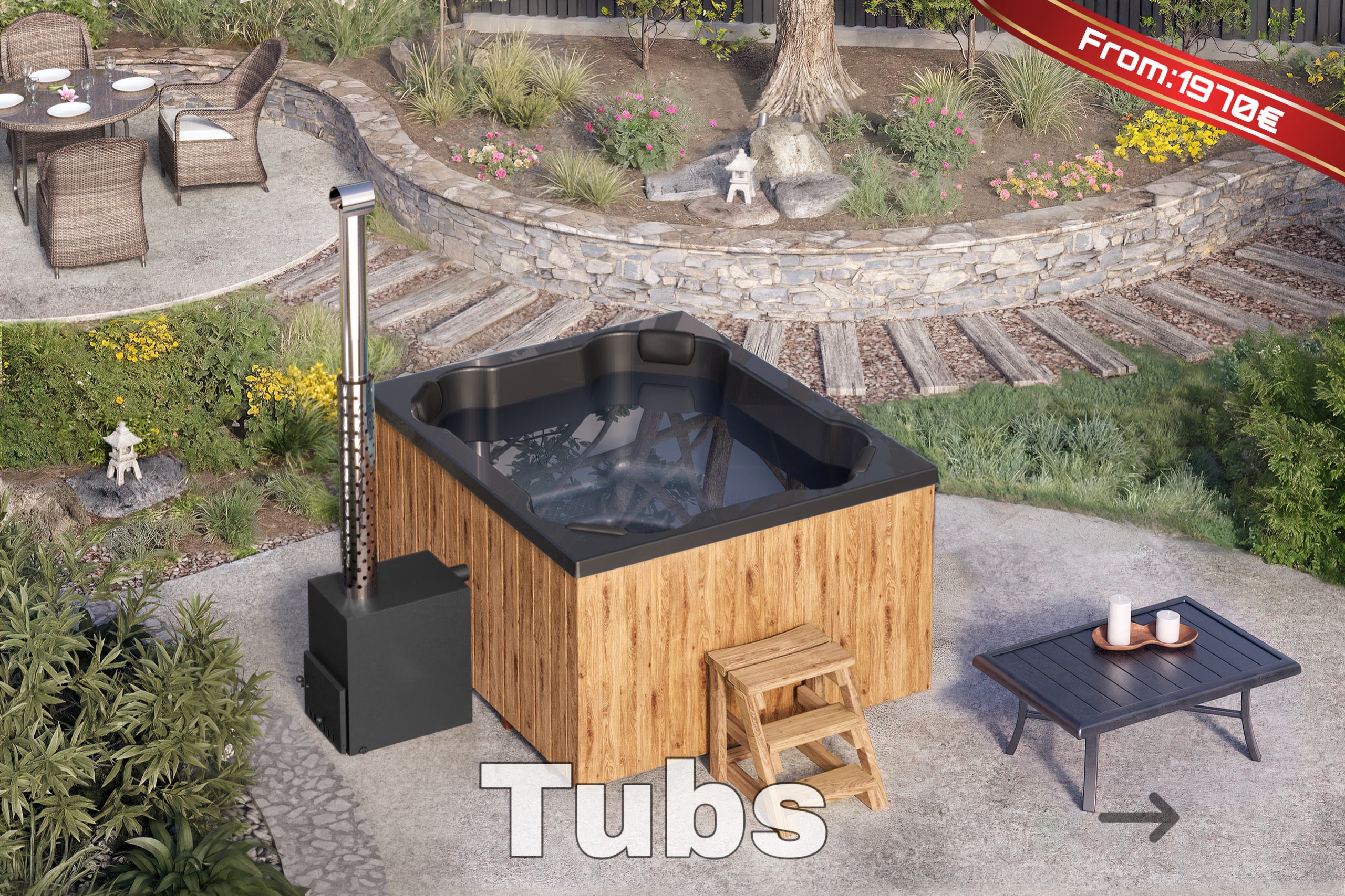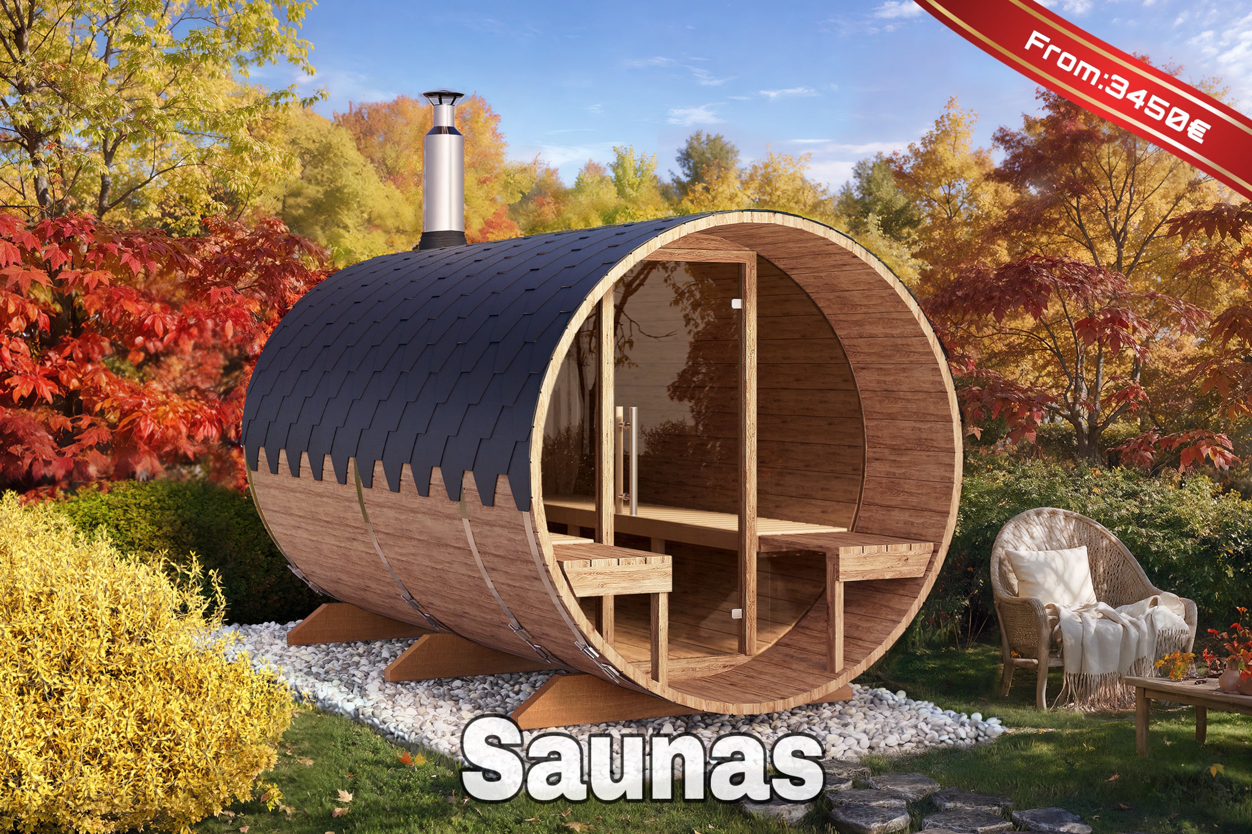 1.7m for 3 persons Cube Barrel Sauna